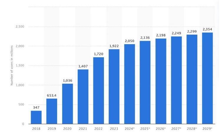 TikTok heeft de wereld veroverd: mensen van alle leeftijden gebruiken de app om korte video’s te maken en te delen. Maar hoeveel mensen gebruiken TikTok? TikTok bereikte het afgelopen jaar een mijlpaal van 2 miljard gebruikers wereldwijd Dit aantal groeit zeer snel sinds de lancering van de app. TikTok voorspelt zelf een blijvende populariteit en verdere groei van het aantal gebruikers. Het verwacht tegen 2029 zo’n 2,3 miljard gebruikers te bereiken.